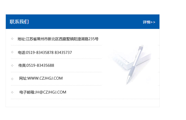 地址:常州市新北區友邦商務大廈1幢16、17層  電話:0519-85101652  傳真:0519-85112595  郵編:213022  網址:www_cz-jiayue_cn.shkaiken.com  郵箱:xiajifengaa@163.com